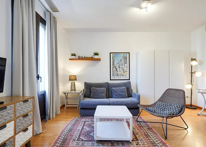 In circa 20 Gehminuten Entfernung vom Barri Gòtic gelegen, bietet das 1-Zimmer-Gran Via City Center Apartment Barcelona bietet die Möglichkeit, verschiedene touristische Attraktionen in der Umgebung zu entdecken.